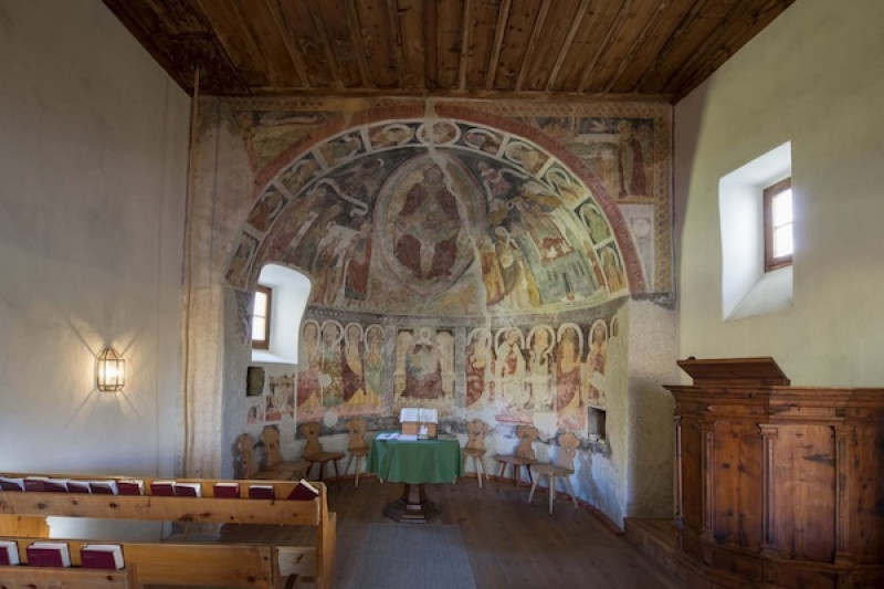 Die Herausforderung in einer Kirche wie derjenigen im Fextal ist das Raumklima. Das Klima in der Kirche folgt den Jahreszeiten. Lieder hinkt das Innenklima der Kirche der Natur immer einen Schritt hinterher. d. h. im Frühling ist der Innenraum der Kirche länger kühl und im Herbst länger warm. Die höhere Aussentemperatur und die kalten Wände in der Kirche führen dazu, dass, sobald warme Luft in die Kirche strömt, die Feuchtigkeit aus der warmen Luft an den kalten Innenwänden kondensiert. Dies fürht zur Feuchtigkeit, die ein Pilz zum Wachstum braucht. Zudem kan ndie Nutzung der Kirche das Innenklima beeinflussen. Es ist also nicht ratsam, die Kirchentüre offenstehen zu lassen. (Quelle: Interview mit Ivano Rampa, Noviteds 2/2025)
